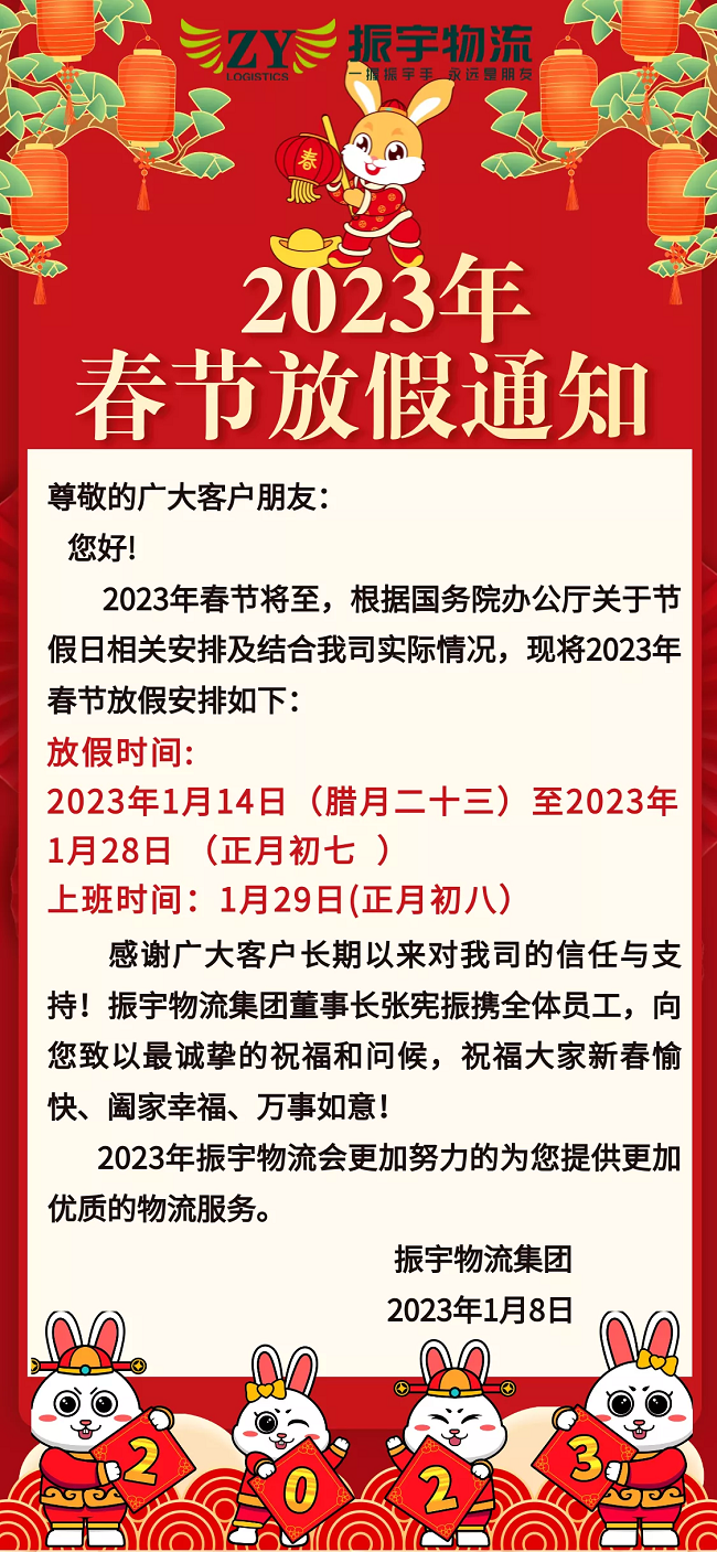 振宇物流集團丨2023年春節(jié)放假通知