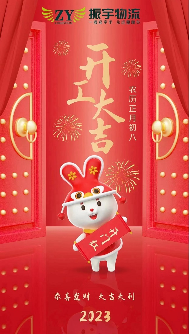 振宇物流集團將于2023年1月29日(正月初八)正式開工,全體員工已迅速進入工作崗位,所有車輛整裝待發(fā)。在新的一年里將以嶄新的面貌繼續(xù)為您提供優(yōu)質(zhì)的物流與供應鏈服務(wù),歡迎廣大客戶朋友提前做好收發(fā)貨安排。